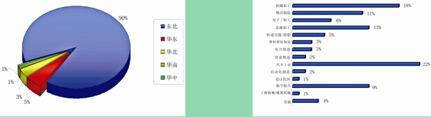 上屆展會總參觀人數(shù):4.8萬人次,觀眾來自30多個省、市。其中以東三省地區(qū)觀眾居多,比例高達90%。涉及電力/新能源、機床/金屬加工設(shè)備、石油化工、液壓氣動、汽車工業(yè)、貿(mào)易、航空航天/軌道交通/船舶、設(shè)計院所、自動化、物流及倉儲設(shè)備、塑料、塑膠設(shè)備、環(huán)保、冶金/鑄造、傳動、工程機械、建筑機械、制藥/食品等30多個行業(yè)。