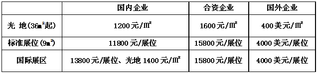 標(biāo)準展位費用:包括展出場地、2.5m高壁板、楣牌制作、9平方米地毯、洽談桌一張、二把椅子、