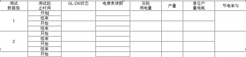 GL-DN節(jié)電測(cè)試原始數(shù)據(jù)記錄表(二)