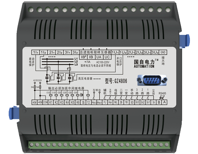 GZ4806高壓無功補償控制器用于35kV/10kV/6kV、50Hz線路上的并聯(lián)電容器組的自動投切控制,用電系統(tǒng)的保護和每組電容器的過流保護、 開口三角電壓保護等多項電參量數(shù)據(jù)記錄和考核。 該控制器以DSP數(shù)字信號處理器為核心,通過采集35kV/10kV/6kV線路三相系統(tǒng)中一相相電流的二次電流值和另外兩相線電壓的二次電壓值,控制器 計算得到相應的實時電流、電壓、無功功率、功率因數(shù)等值,進行有效、合理地控制并聯(lián)電容器組的投切,達到提高功率因數(shù)、降低線損、改善電壓質(zhì)量的目的。 其內(nèi)置5種控制方案,用戶可根據(jù)不同現(xiàn)場需求自行配置為補償或者濾波模式。并且其所監(jiān)測到的各項電網(wǎng)參量數(shù)據(jù),可通過多種通信抄表方式 (RS232/485,GPRS)傳輸至計算機上進行后臺分析。