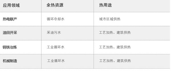 ±在熱電、冶煉(鋼鐵、有色金屬)、石化(石油、化工)、紡織等行業(yè),利用25~60℃左右的低溫余熱水,通過少量高品位熱能驅(qū)動,制取45~90℃中高溫?zé)崴?,供區(qū)域集中供熱、工業(yè)再熱加熱、鍋爐補水預(yù)熱。