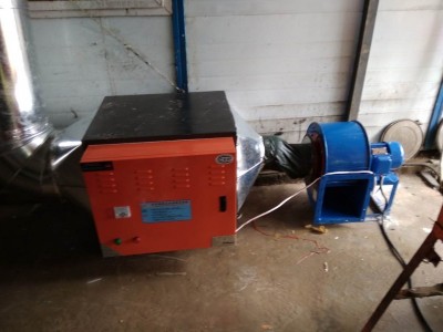 3、 與風機安裝位置:風機建議安裝在靜電式油煙凈化器之后,這樣一方面使安裝的靈活性較大,另一方面可保護風機不受油煙廢氣的腐蝕。