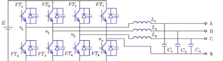 逆變器采用三相四橋臂主電路結構,將復雜的三相電壓的控制, 轉化為單相電壓控制,因此既可帶線性和平衡負載,也可帶非線性和非平衡負載。通過對輸出電壓的幅相獨立控制,使其具有和三相四線制公共電網(wǎng)相同的供電特性和高性能。
