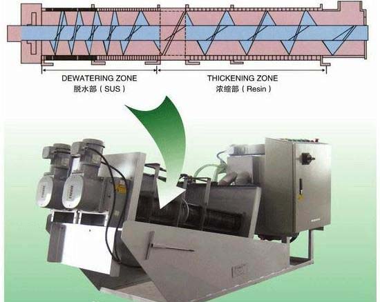 1、濃縮:當(dāng)螺旋推動(dòng)軸轉(zhuǎn)動(dòng)時(shí),設(shè)在推動(dòng)軸外圍的多重固活疊片相對(duì)移動(dòng),在重力作用下,水從相對(duì)移動(dòng)的疊片間隙中濾出,實(shí)現(xiàn)快速濃縮。