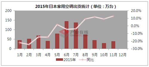 據(jù)日本制冷和空調(diào)工業(yè)協(xié)會(huì)(JRAIA)統(tǒng)計(jì)數(shù)據(jù)顯示,11月日本國(guó)內(nèi)家用空調(diào)出貨持續(xù)回暖,出貨量為38.7萬(wàn)臺(tái),同比增長(zhǎng)13.1%?;久嫔蟻?lái)看,日本經(jīng)濟(jì)自2015年三季度來(lái)復(fù)蘇穩(wěn)定,但受制于新興市場(chǎng)的疲弱需求,這個(gè)全球第三大經(jīng)濟(jì)體的經(jīng)濟(jì)復(fù)蘇前景仍持續(xù)承壓。