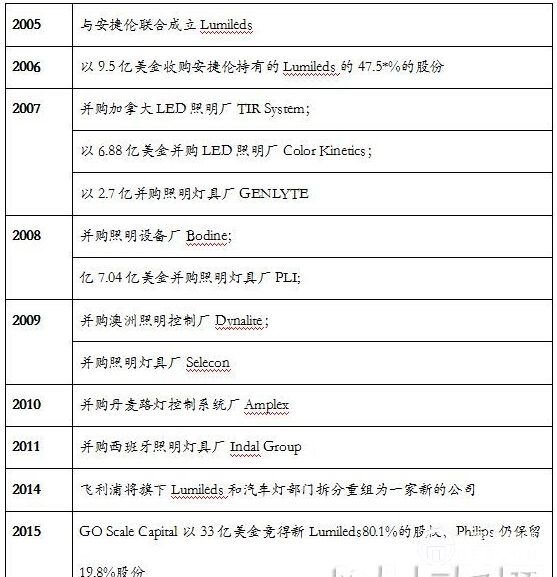 也因此,飛利浦需要通過后向一體化Lumileds,內(nèi)部化供應鏈,更重要的是掌握LED市場變革的脈動,提前在LED普及化之前,領(lǐng)先布局技術(shù),專利及標準,這些都不是靠市場可以獲取的。除開Lumileds,當時飛利浦有一系列的收購動作來支撐其縱向一體化戰(zhàn)略。