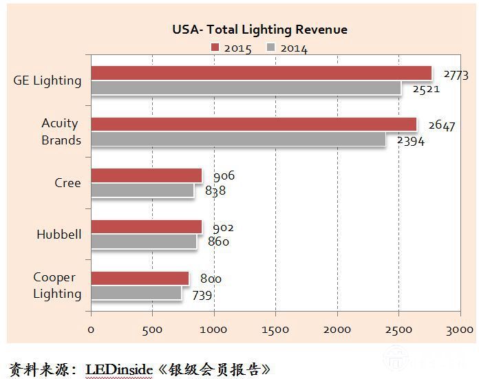 實際上,現(xiàn)在的CREE已經(jīng)不再適合定位為LED公司,而是一家十足的照明公司,最近幾個季度的表現(xiàn)來看,CREE的lighting產(chǎn)品已經(jīng)超過公司營收規(guī)模的50%了。而在北美市場,CREE的已經(jīng)晉升到了第三大照明廠商。