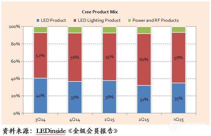 問題來了,實際上前向一體化的風險之一就是進入到客戶的商業(yè)領(lǐng)域,必然會遇到利益沖突的問題。以采用了CREE的LED而具備亮度優(yōu)勢并以此為定位的客戶必然受到最直接的沖擊,并不得不重新進行定位。這也是近年來CREE的LED營收不進反退的重要原因。