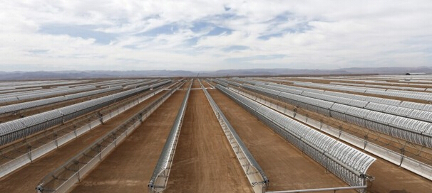 在距離摩洛哥山城瓦爾扎扎特10公里左右耀眼的沙漠中,矗立著當(dāng)前世界上單機最大規(guī)模的槽式光熱電站——Noor 1。瓦爾扎扎特園區(qū)整體面積約30平方公里,是摩洛哥第一個光伏光熱混合發(fā)電園區(qū),預(yù)計將于2017年全面投運,屆時總裝機規(guī)??蛇_(dá)580MW,可滿足100萬戶家庭的用電需求。