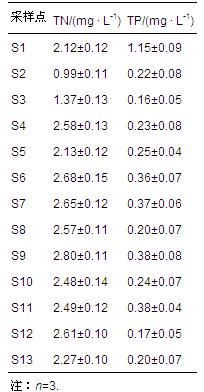 采樣點(diǎn)的布設(shè)結(jié)合河流的特點(diǎn),特別是農(nóng)村村落分布及斷頭浜交匯處,從上游到下游共設(shè)13個(gè)采樣點(diǎn),樣點(diǎn)具體布設(shè)如圖 1所示.于2014年10月對(duì)掌下浜(北段)進(jìn)行現(xiàn)場(chǎng)觀測(cè)與采樣,采用口徑為9 cm的柱狀采樣器(HYDROBIOS,德國(guó))采集未經(jīng)擾動(dòng)的沉積物柱狀樣品,每個(gè)采樣點(diǎn)均隨機(jī)采集3個(gè)樣品,沉積物現(xiàn)場(chǎng)以5 cm分層,混勻后立即裝入聚乙烯自封袋中,并同時(shí)運(yùn)用有機(jī)玻璃采水器采集相應(yīng)點(diǎn)位距離水面30 cm深處的河水,一同放入冷藏箱中4 ℃保存,送往實(shí)驗(yàn)室處理.沉積物樣品送至實(shí)驗(yàn)室后采用孔徑1 cm的鐵篩對(duì)底泥進(jìn)行粗篩,以除去植物殘?bào)w和貝類等大顆粒物質(zhì),對(duì)篩過(guò)的底泥進(jìn)行充分混勻,經(jīng)冷凍干燥機(jī)(LABCONCO凍干機(jī),美國(guó))凍干后,瑪瑙研缽充分研磨,過(guò)100目篩,放入玻璃瓶置于陰涼干燥處備用.采集的柱狀沉積物均分為3層,即表層(0~5 cm)、中層(6~10 cm)、底層(11~15 cm).