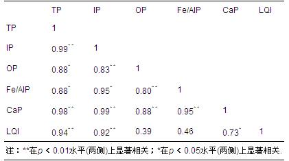 3.3 沉積物各形態(tài)磷相關(guān)性分析
