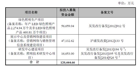 歐普照明的IPO募集資金投向主要為LED綠色照明生產(chǎn)項(xiàng)目、研發(fā)中心和展示中心及營銷網(wǎng)絡(luò)建設(shè)。其中照明生產(chǎn)項(xiàng)目擬投入5.67億元。