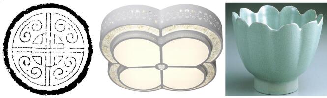 圖說:宏冠照明在傳統(tǒng)文化中找到設(shè)計(jì)的靈感(左圖為秦漢時(shí)期瓦當(dāng)、中圖為宏冠照明產(chǎn)品、右圖為宋代瓷器)