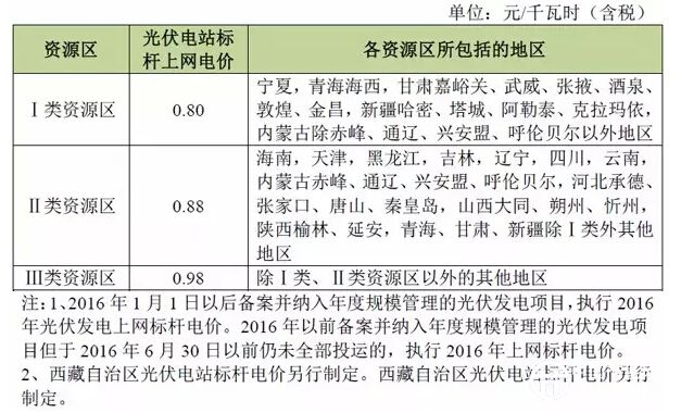 我國發(fā)展太陽能光伏以來,光伏電價進行了多次調整,目前我國光伏上網標桿電價是根據(jù)《國家發(fā)展改革委關于完善陸上風電光伏發(fā)電上網標桿電價政策的通知》(發(fā)改價格[2015]3044號)(以下簡稱3044號文)確定的。根據(jù)該規(guī)定,2016年1月1日以后備案并納入年度規(guī)模管理的光伏發(fā)電項目,以及2016年以前備案并納入年度規(guī)模管理的光伏發(fā)電項目但于2016年6月30日以前仍未全部投運的,執(zhí)行2016年上網標桿電價,2016年以前備案并在2016年6月30日以前全部投運的項目,上網電價按《國家發(fā)展改革委關于發(fā)揮價格杠桿作用促進光伏產業(yè)健康發(fā)展的通知》(發(fā)改價格[2013]1638號)文中的價格執(zhí)行。