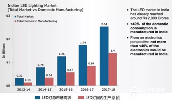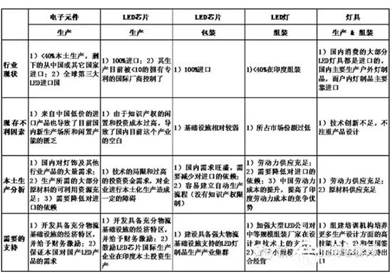 2)國內(nèi)電子產(chǎn)品生產(chǎn)能力低,印度市場上大部分有附加價值的LED燈都是在國外生產(chǎn)的;