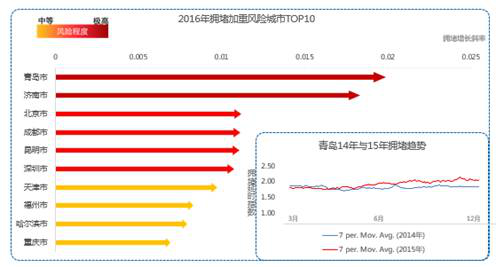 2016年擁堵加重風(fēng)險(xiǎn)城市TOP10