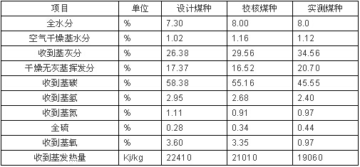 設(shè)計煤種及實測煤種特性