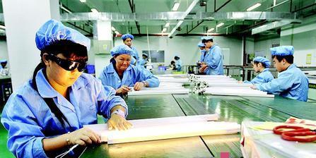惠州長(zhǎng)方項(xiàng)目去年產(chǎn)值達(dá)10億元。這是工程技術(shù)人員在生產(chǎn)車間工作。