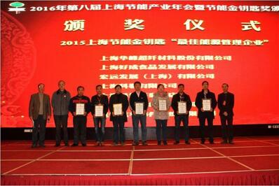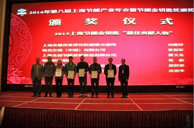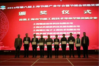 為表彰對節(jié)能產業(yè)做出卓越成績的企業(yè)、個人及機構,由上海應用技術大學副校長陳東輝和上海市節(jié)能工程技術協(xié)會會長曹偉武為獲得2015年度上海節(jié)能金鑰匙獎的企業(yè)和個人頒發(fā)包含“最佳貢獻人物”、“節(jié)能技術創(chuàng)新企業(yè)”、“最佳能源管理企業(yè)”、“最佳‘互聯(lián)網+’企業(yè)”、“最佳客戶服務企業(yè)”等獎項證書,同時上海市節(jié)能工程技術協(xié)會秘書長陳宏為首批獲得上海市節(jié)能工程技術等級甲級資質的企業(yè)頒發(fā)證書。