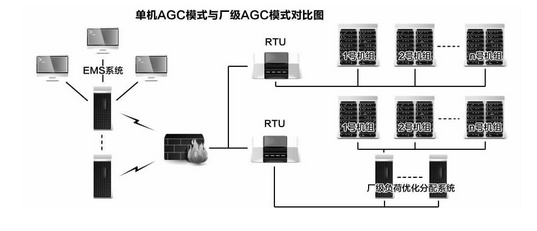 如圖所示,上半部分為傳統(tǒng)的單機(jī)AGC調(diào)度模式,下半部分為經(jīng)典的廠級負(fù)荷調(diào)度模式的示意圖。其中,廠級負(fù)荷調(diào)度模式在單機(jī)AGC模式的基礎(chǔ)上,增設(shè)了廠級負(fù)荷優(yōu)化 分配系統(tǒng),充分考慮各機(jī)組的煤耗率、調(diào)節(jié)范圍、運行工況等性能參數(shù)特性,自動、合理地進(jìn)行全廠機(jī)組的優(yōu)化組合和負(fù)荷分配,從而進(jìn)一步達(dá)到節(jié)能減排的效果。從單機(jī)AGC模式向廠級負(fù)荷調(diào)度模式的轉(zhuǎn)變,關(guān)鍵在于廠級負(fù)荷優(yōu)化分配系統(tǒng)的結(jié)構(gòu)與優(yōu)化分配策略設(shè)計。