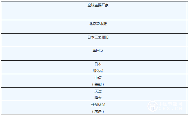據(jù)統(tǒng)計,全球主要幾個廠家的膜材料性能如下表所示: