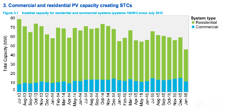 澳大利亞全國累計量超過5GW,預示著澳大利亞的住宅太陽能市場開始引起關注。在一月份,小型光伏系統(tǒng)安裝量為8683,比2015年12月份減少2,937,相比于去年下降17%。這些數(shù)據(jù)是基于小規(guī)模太陽能和住宅太陽能熱水系統(tǒng)的。