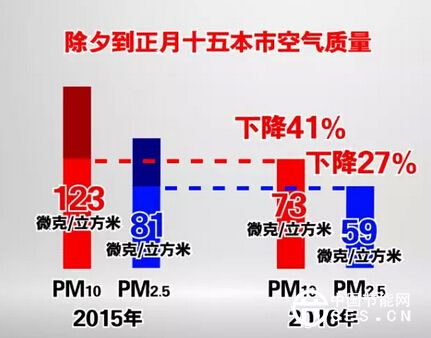 監(jiān)測(cè)數(shù)據(jù)顯示,與2015年相比,今年元宵節(jié)PM2.5的峰值濃度及平均濃度較去年元宵節(jié)下降近90%。整體來(lái)說(shuō),今年春節(jié)期間,從除夕到正月十五這16天,北京的空氣質(zhì)量是要好于去年同期,PM2.5和PM10分別比2015年春節(jié)期間下降了27%和41%。