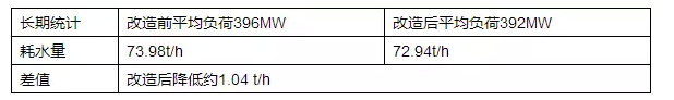 統(tǒng)計改造前后脫硫系統(tǒng)整體水耗,無明顯變化,改造后與改造前基本持平