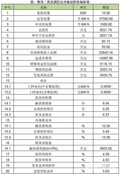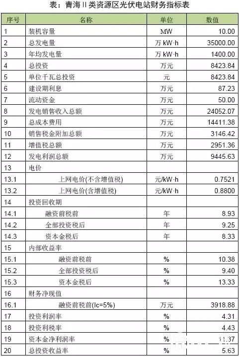 表2:青海?、耦愘Y源區(qū)光伏電站項(xiàng)目財(cái)務(wù)指標(biāo)表