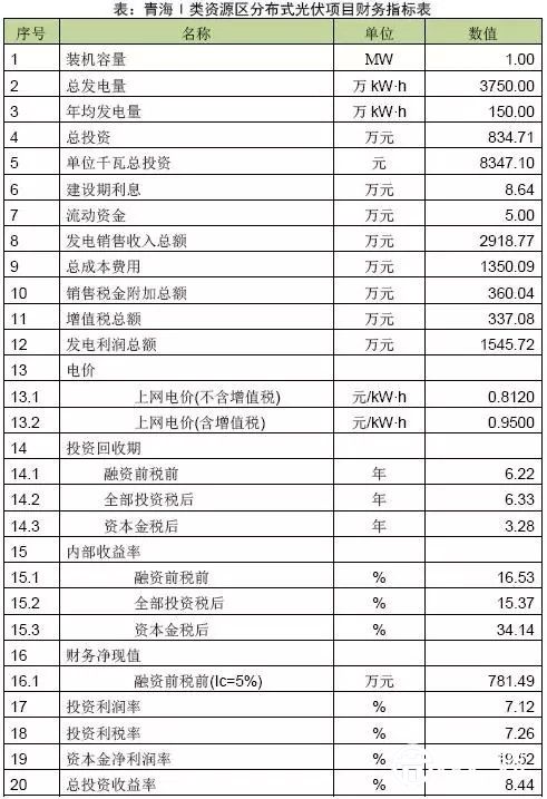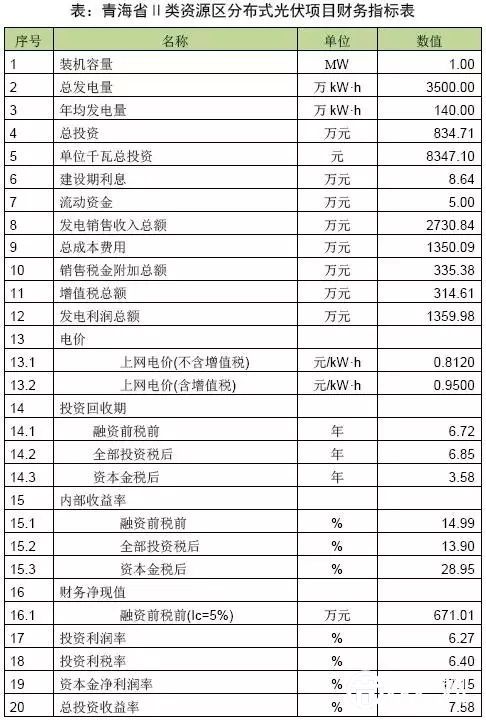 表5青海?、蝾愘Y源區(qū)分布式光伏項(xiàng)目財(cái)務(wù)指標(biāo)表
