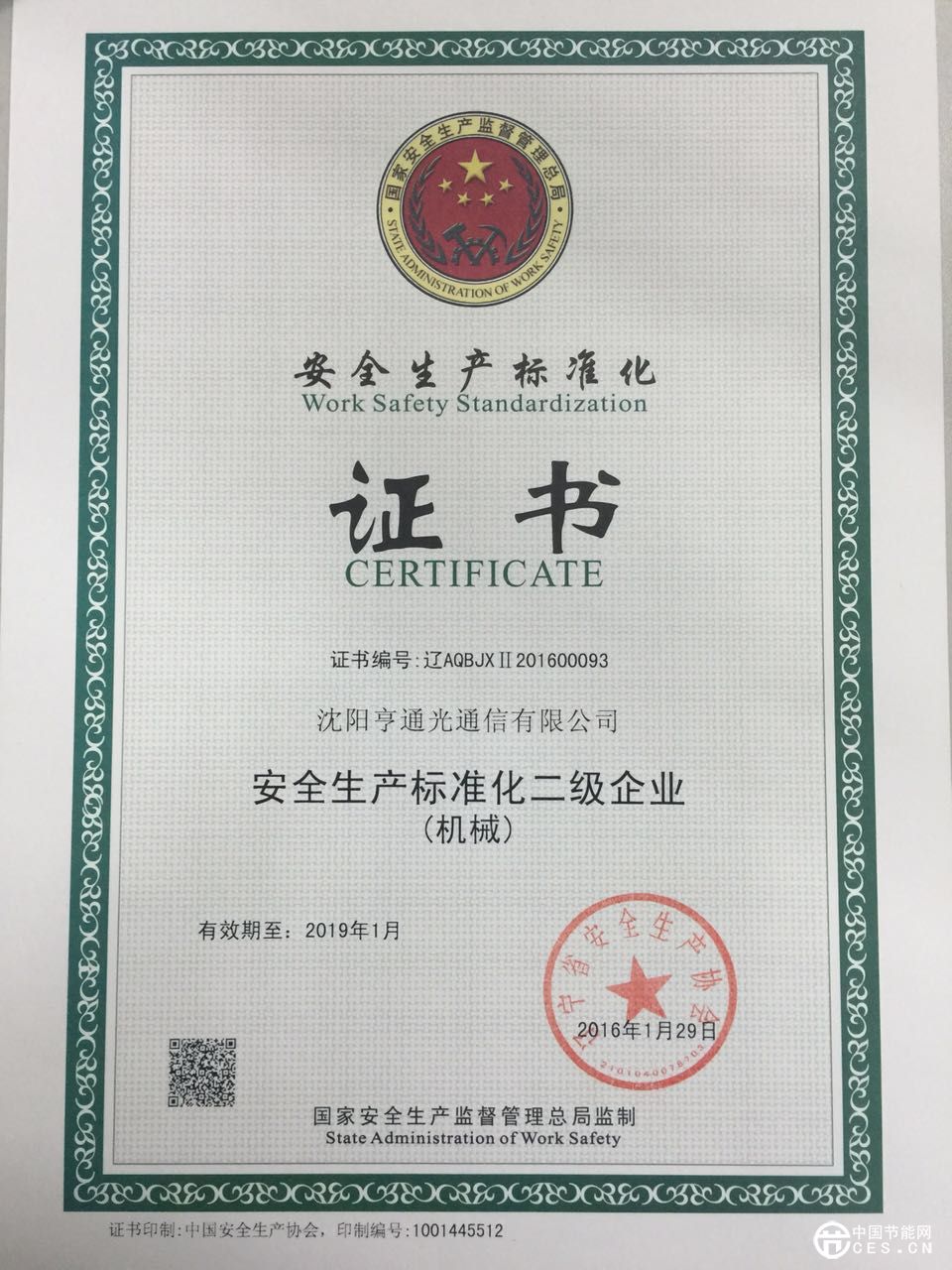 2月25日,亨通通信產業(yè)集團沈陽亨通光通信有限公司收到由國家安全生產監(jiān)督管理總局頒發(fā)的安全生產標準化二級資質證書,標志著沈陽亨通安全生產管理邁上了新臺階。