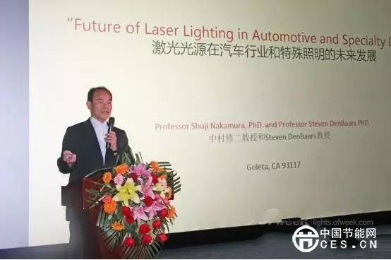 在受聘首席科學(xué)顧問(wèn)的儀式上,中村作了題為《激光未來(lái)發(fā)展方向》的演講,分享了他在激光照明領(lǐng)域的研究和對(duì)激光產(chǎn)業(yè)未來(lái)發(fā)展的看法,以及半導(dǎo)體激光器及其激光照明技術(shù)的優(yōu)勢(shì)。
