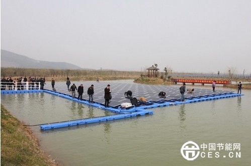 參會(huì)嘉賓實(shí)地參觀合肥聚能新能源20MW水面光伏電站