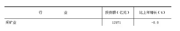 2015年采礦業(yè)投資12971億元,同比下降8.8%。