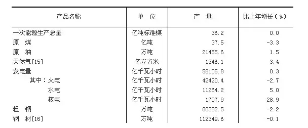 2015年原煤等主要工業(yè)產(chǎn)品產(chǎn)量及其增長(zhǎng)速度