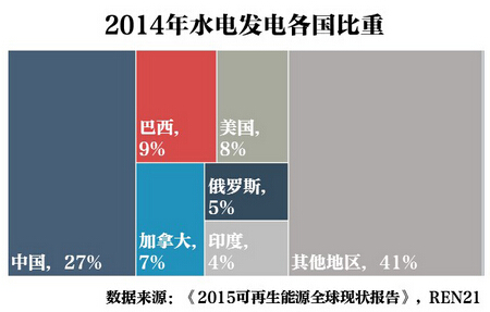 截止2014年底,中國可再生能源發(fā)電量及太陽能熱水器容量全球排名第一。這意味著全球70%的太陽能熱水器產(chǎn)能,27%的水電發(fā)電量,和全球最多的水電裝機(jī)量和風(fēng)電容量。