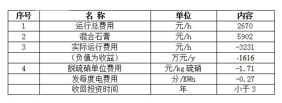以上案例結(jié)果表明,達(dá)到煙氣超低排放指標(biāo),粉塵5mg/Nm3,二氧化硫35mg/Nm3, 氮氧化物50mg/Nm3,抵消所有運(yùn)行費(fèi)用后,副產(chǎn)品銷售每年能賺取1616萬(wàn)元,預(yù)測(cè)3年內(nèi)能收回工程投資。