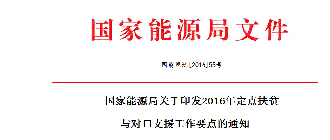 國(guó)家能源局10日印發(fā)2016定點(diǎn)扶貧與對(duì)口支援工作要點(diǎn)的通知,要求做好定點(diǎn)復(fù)印和對(duì)口志愿工作,加快清潔能源開發(fā),有序推進(jìn)風(fēng)能開發(fā),擴(kuò)大光伏扶貧實(shí)施范圍,探索資產(chǎn)收益扶貧。