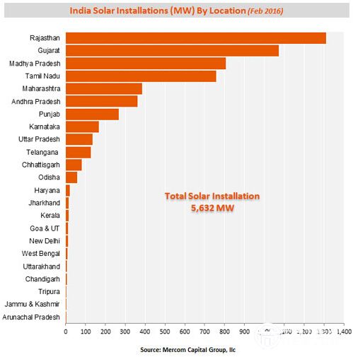 圖2:印度各邦的光伏發(fā)電系統(tǒng)設(shè)備容量(出處:Mercom Capital Group)