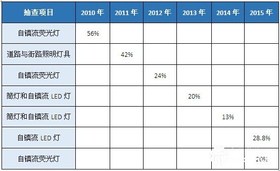 2010-2015年質(zhì)檢總局抽查照明燈具結(jié)果一覽