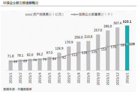 2016年開(kāi)年,受節(jié)假日及主要資本市場(chǎng)波動(dòng)影響,新三板規(guī)模擴(kuò)張程度明顯放緩。月中新增6家環(huán)保企業(yè)在新三板掛牌。A股IPO方面,證監(jiān)會(huì)把年初的新股發(fā)行節(jié)奏定在每月10家以下,1月首批7家獲IPO批文的企業(yè)中僅有一家從事節(jié)能業(yè)務(wù),而未有環(huán)保企業(yè)。目前,共有14家已披露的環(huán)保企業(yè)處于IPO排隊(duì)狀態(tài),這些企業(yè)中的幾家將有可能在未來(lái)幾個(gè)月內(nèi)發(fā)行獲批的名單中出現(xiàn)。