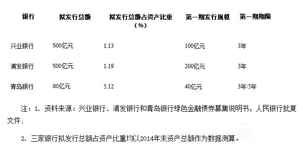 在央行出臺政策以來,興業(yè)銀行、浦發(fā)銀行和青島銀行等3家銀行先后發(fā)行了綠色金融債券,具體發(fā)行情況見表1。