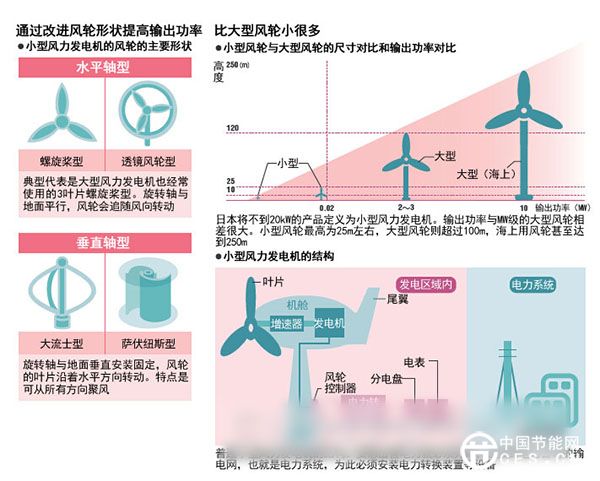 目前,小型風(fēng)輪與大型風(fēng)輪的輸出功率相差懸殊,因此小型風(fēng)力發(fā)電不可能成為替代能源。但如果安裝數(shù)量增加,小型風(fēng)力發(fā)電機(jī)也有望為日本可再生能源提供一臂之力。