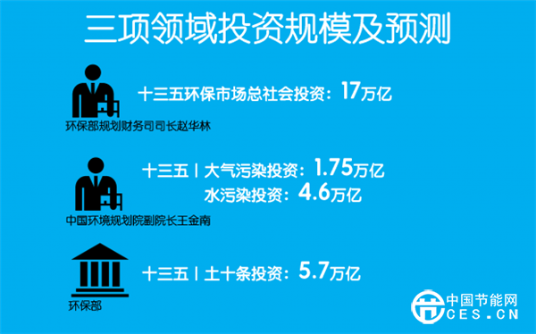 雖然各方數(shù)據(jù)有所出入,且來源不一,但從表中數(shù)據(jù)可以清晰地看出,中央政府對于“十三五”環(huán)境領(lǐng)域,特別是三項污染防治行動計劃,有著很高的投資期望。
