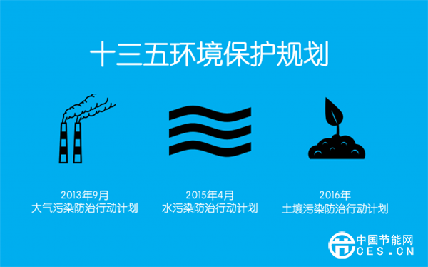 2016年初舉行的全國環(huán)保工作會議上,環(huán)保部明確表示,“十三五”期間,將以改善環(huán)境質(zhì)量為核心,深入實施大氣、水、土壤污染防治三大行動計劃。環(huán)保部部長陳吉寧還特別強(qiáng)調(diào),2016年將要全面實施《土壤污染防治行動計劃》(“土十條”),聯(lián)合2013年9月發(fā)布的《大氣污染防治行動計劃》 (“大氣十條”) 以及2015年4月發(fā)布的《水污染防治行動計劃》(“水十條”),政府對于三大領(lǐng)域的關(guān)注將達(dá)到前所未有的高度。三項防治行動計劃的相繼推出,展示了政府在環(huán)境保護(hù)領(lǐng)域的力度與決心,同時也可以看出,在“十三五”中提出的深入實施大氣、水、土壤三項行動計劃并非突如其來,而是醞釀已久。