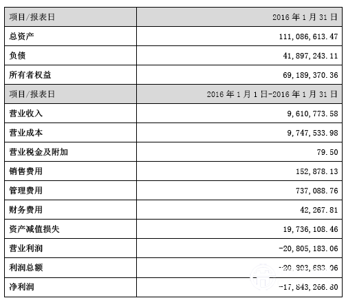 資料顯示,森藍(lán)環(huán)保經(jīng)營(yíng)范圍包括電子廢棄物的回收拆解、處置,生產(chǎn)性廢舊金屬收購(gòu),工業(yè)廢棄物再生專(zhuān)業(yè)領(lǐng)域內(nèi)的技術(shù)開(kāi)發(fā)等。截止2016年1月31日,森藍(lán)環(huán)保的財(cái)務(wù)及資產(chǎn)指標(biāo)如下表所示: