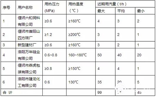 經(jīng)對工業(yè)區(qū)潛在的熱用戶進(jìn)行調(diào)查,結(jié)果如下表: