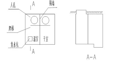 在疏水(閥門)井的制作方面,由于施工工期的限制,摒棄了傳統(tǒng)的混凝土結(jié)構(gòu),采用了全鋼板式防水結(jié)構(gòu),示意圖如下: