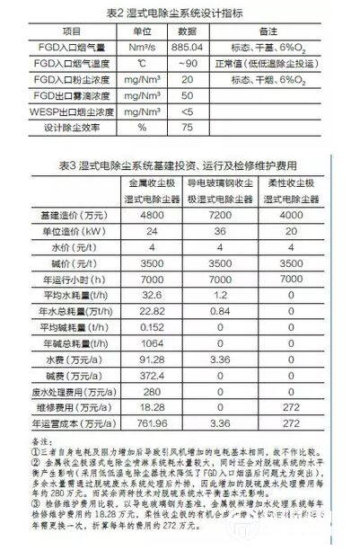 不同技術(shù)路線濕式電除塵器技術(shù)經(jīng)濟性比較