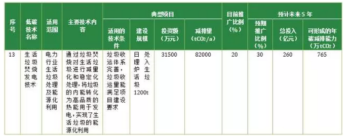 2014年8月,國(guó)家發(fā)改委將生活垃圾焚燒發(fā)電技術(shù)列入《國(guó)家重點(diǎn)推廣的低碳技術(shù)名錄》,并預(yù)測(cè)在全國(guó)范圍內(nèi)推廣該技術(shù)后的第五年末,替代化石燃料可形成的年碳減排量為765萬(wàn)噸CO2。